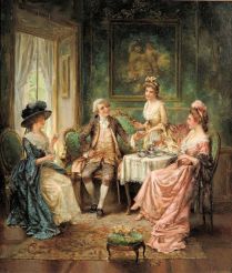 On the other hand, Afternoon Tea was quite a lavish ceremony enjoyed lolling about in comfortable chairs and sofas often in a reception room or lounge area and eaten at a low table (Low Tea) a picturesque setting in the garden. It was all about status and letting the guests know or anyone passing by, that they could afford a sumptuous, extravagant afternoon tea. Families would have their portraits painted sitting for tea in the garden with an exquisite array of teas, fine china and tableware so that people would recognise their extreme wealth.