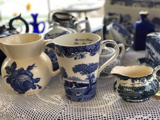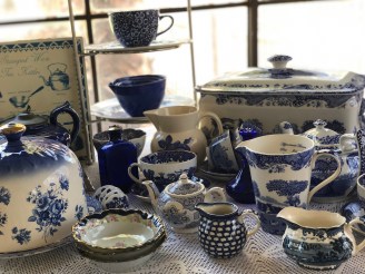We can mix any blue and white china with vintage, antique china or porcelain such as plates, teapots, biscuit barrels, vases, Chinese urns, and ginger jars. Simple transferware dinner sets or just odd mismatched items to create the perfect balance of old and new.