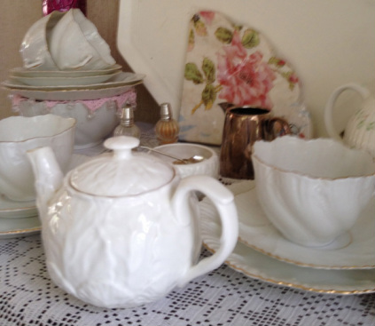 My mother always had a tea centre in her kitchen beautifully set up in readiness on a tray with starched linen cloth and pretty cups and saucers. Displayed on top of each cup and saucer was a selection of various teas. To complete the display were teapots, tea caddies and Tea tins, tea strainers and mugs all ready to pop the kettle on and make a cup of tea for guests as they dropped in to visit her in the Blue Mountains. The tea daintiness was replicated in the loungeroom on a wooden tray mobile complete with silver tea service and a range of more delicate cups and saucers all ready for high tea. This is where I learnt to love fine vintage bone china and porcelain. The patterns, the history and the finesse of china that has to a degree been lost in recent times due to the closure of so many fine bone china and porcelain companies in the UK and Europe.