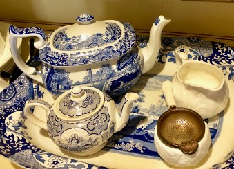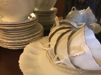 I’ve inherited some of my current collection, and the absolute favourite is my fathers’ tea set. A paper-thin crinkled fine bone china tea set, white with gold trim and complete with a cake plate and large sugar bowl but alas, no Teapot. Made by Shelley, England, it is delightful for a special occasion -I love it.