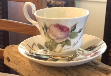 During Redoute’s life, he painted over 2000, plates of 1800 species of plants and flowers and dominated botanical painting between 1790-1830. Redouté received the title of “Draughtsman and Painter to the Queen’s Cabinet” and he was appointed to paint the flowers in the garden of Malmaison. Between 1817 and 1824, Redouté’s most famous work, Les Roses, was published with stipple engravings of the roses at Malmaison and other gardens around Paris. Some of the rose cultivars evidently no longer exist. In 1825, Charles X the king of France made Redouté a member of the Légion d’honneur, France’s highest order of merit and Leopold I, the king of the Belgian, made him a knight of the Order of Leopold, however, Redouté spent his later life in debt and thus worked right until his death. Fortunately, his familiar work is often seen on everyday objects, books, stationery and art prints today such as my tea set.